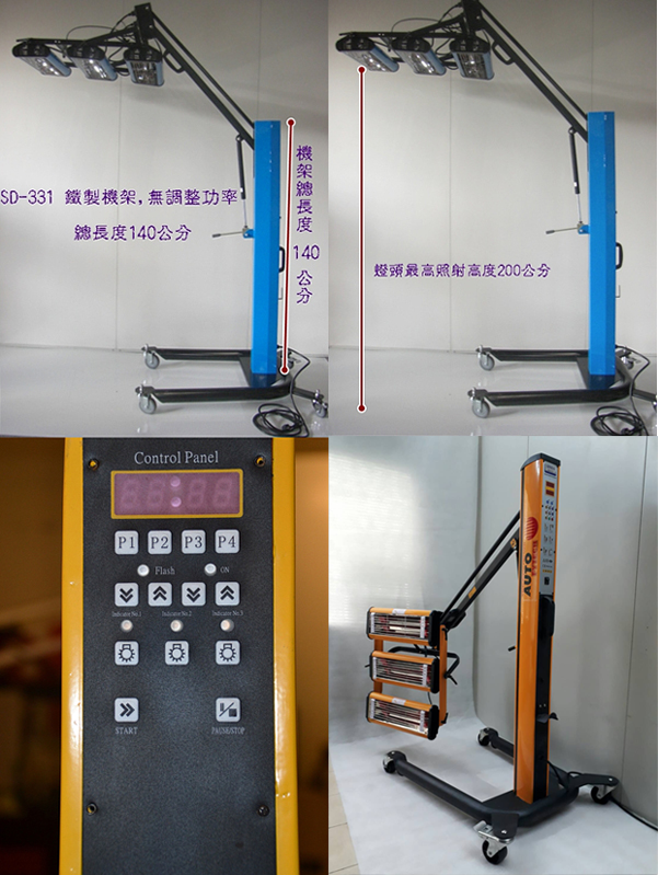 燈 管:德國21英吋石英鹵素短波紅外線燈管,3×1000W,並有防耀眼功能,保護雙眼